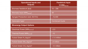 First, we are rapidly advancing our innovative third-generation biomass gasification technology to produce a high hydrogen content (>50% H2 by volume) clean syngas with negligible tars, nitric oxide (NOx) and sulfur oxide (SOx).