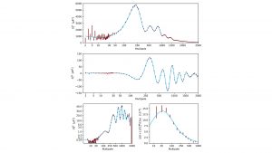 Once a power spectrum has been measured, it is akin to having a digital imprint of the early Universe and we can confront it with an atlas of pre-computed predictions under various hypotheses. Several things may result from this matching process. It may turn out that none of the models fit within the acceptable range of uncertainties. That is, we would have proved that all our earlier ideas were wrong! Or at least incomplete. The other possibility would be that several models would match, given the uncertainties. Of course, the tighter the uncertainties, the less residual degeneracy, i.e., indistinction between possibilities. We found that the so-called ‘Tilted-Lambda-Cold-Dark-Matter’ (LCDM) provides a perfect statistical match, provided its parameters have certain values which are determined at the per cent level of precision! This model’s predictions, for the best fitting parameters, are given by the blue curves of Fig. 3, which perfectly describes the data.