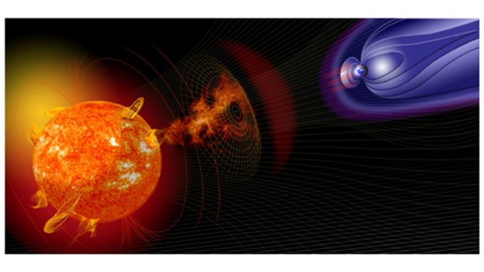 The near-space environment of Earth is dominated by the collision of magnetised plasma that constitutes the solar wind with Earth’s protective magnetic field. Turbulent conditions in the sun give rise to explosions of energy and matter, such as Coronal Mass Ejections (CMEs). The most powerful events result in compression and distortion of the volume of space carved out by the magnetic field, called the magnetosphere. Energy couples from the solar wind into the magnetosphere, where it is released in spectacular auroral displays and a range of other effects, some of them potentially harmful to humans in space and to technological systems.